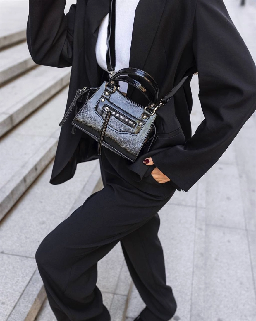 8. Versatile Sophistication: Suspended Dawn Faux Patent Leather Bag