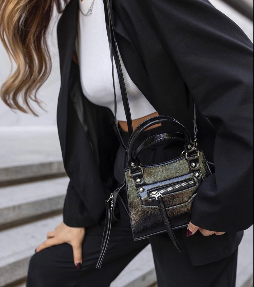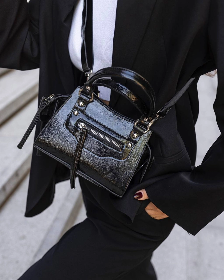 Embrace chic companionship with the Suspended Dawn Faux Patent Leather Bag, offering everyday glamour to elevate your style quotient. Whether you’re running errands or attending a social gathering, this bag ensures you stand out with a touch of glamour, making every day a fashionable affair.